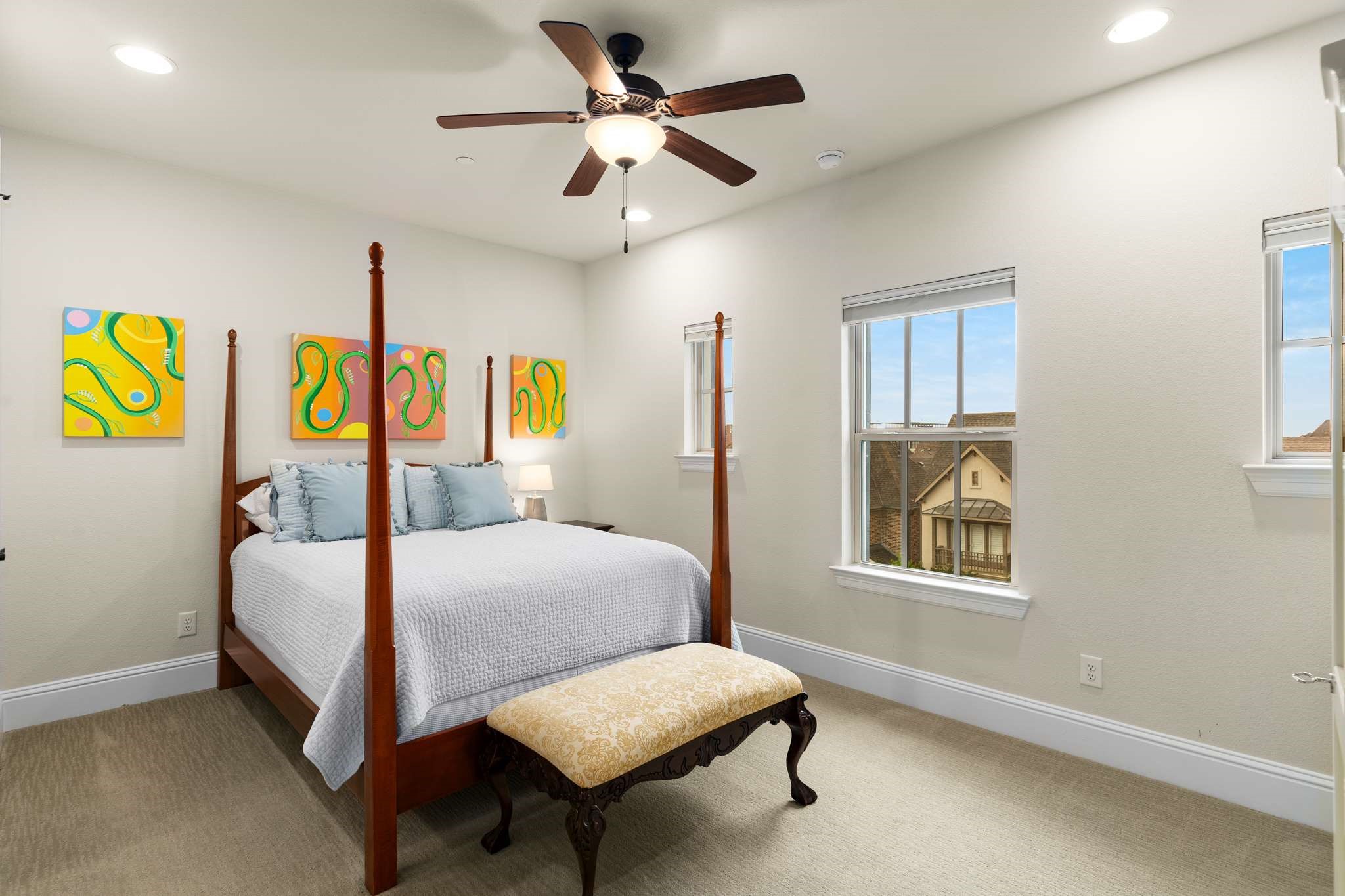 Inside, you'll find a beautifully upgraded interior, with the highlight being the luxurious primary bathroom and Custom Closets. Recently renovated, it provides a spa-like atmosphere, complemented by his and her closets that offer ample storage in style. The home features an abundance of upgrades, Custom Black Walnut fireplace mantel above fireplace in dining creates a spectacular focal point, modern lighting throughout ,wine bar, media room with surround sound, hard wood flooring, quartz counters, sunshades, Monogram stainless appliances, epoxy garage floor, Reme Halo LED Air Purifier System and home surge protection, tankless water heater and water lines in wall if built in Coffee maker is desired. The home also includes an area studded to contain an elevator. Every detail of this home has been crafted with quality and elegance in mind.