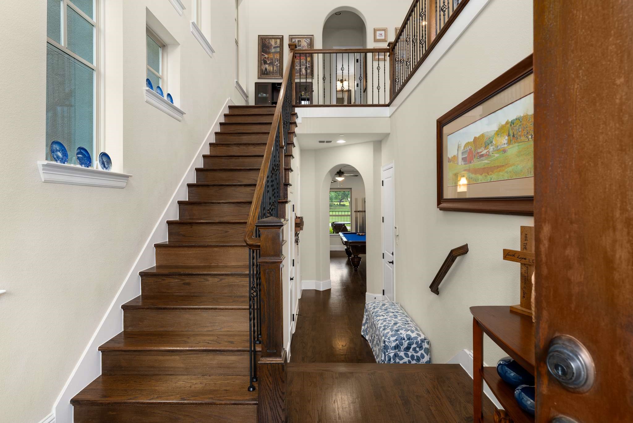 Welcome home to a residence that understands good taste,great design,an even better lifestyle.Tucked inside an upscale,gated urban community with sweeping views of the legendary Nelson Golf Course,this is the kind of place you come back to after a morning tee time or a long weekend of festivities.In the heart of DFW, the home blends luxury with effortless function.The upgrades read like a greatest-hits list:hardwood floors,quartz countertops,Monogram stainless appliances in a kitchen made for both entertaining and quiet mornings with espresso (yes, it's already plumbed for that built-in coffee maker). Modern lighting,sunshades,a bar ready for post-round pours,a media room with surround sound set the tone for easy sophistication.The primary suite is a true standout.Recently renovated,the bathroom delivers spa-level indulgence, while custom closets--thoughtfully designed and beautifully executed,make organization feel like a luxury ritual rather than a chore. It's refined,calm,indulgent in all the right ways.One of my favorite details? The custom black walnut fireplace mantel anchoring the dining space--rich, dramatic, and a perfect focal point for dinner parties that stretch long after dessert. Add in the epoxy garage floor, tankless water heater, Reme Halo LED air purification system, whole-home surge protection, and even a future-ready, elevator-studded area, and you'll see this home was designed with intention and foresight.Out back, low-maintenance artificial turf creates a lush, always-perfect green space--because weekends are for travel, tee times, and cocktails, not yard work.Gas line to the fire pit sets the scene for cozy evenings with friends,while the HOA handles the front yard so you never lift a finger.This isn't just a home--it's a lifestyle. Private, polished, positioned in a vibrant community w exclusive access and iconic golf course views. If refined living,country club ease,lock-and-leave convenience speak your language,you've just found your place.