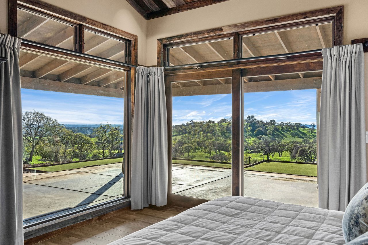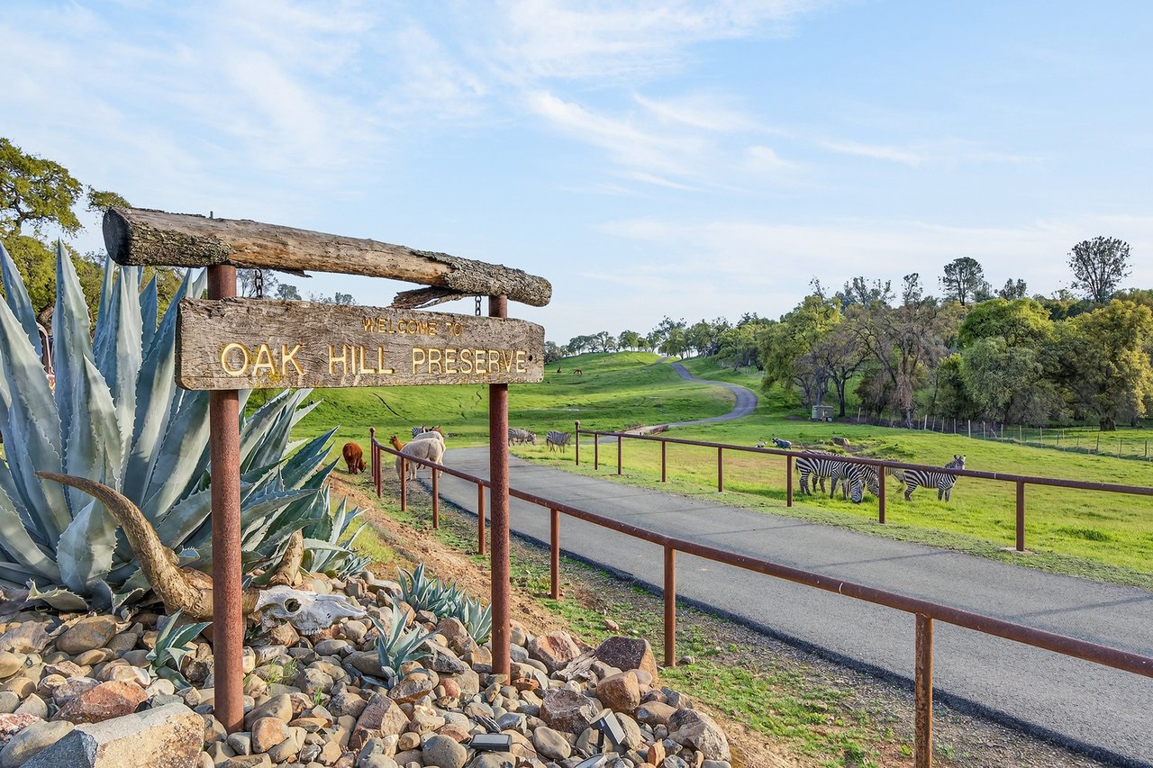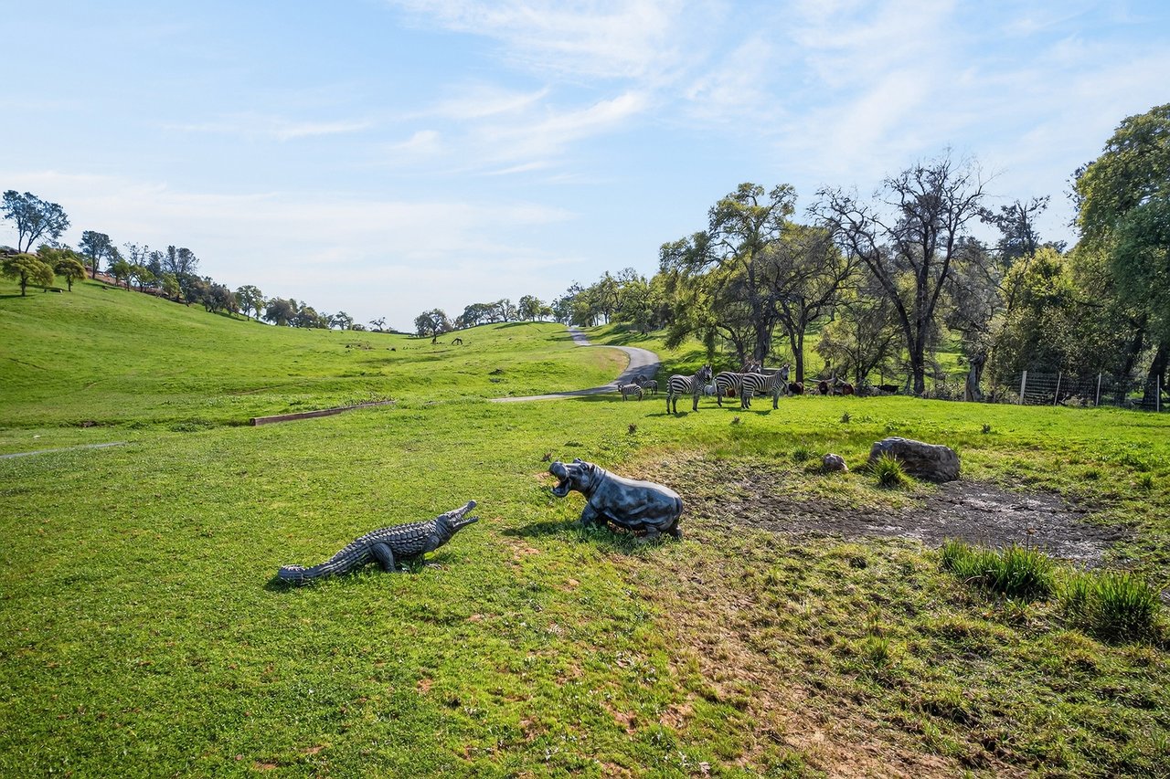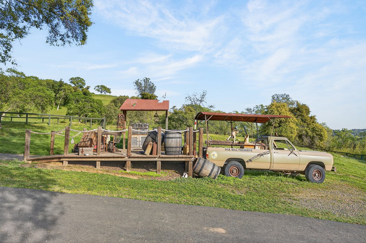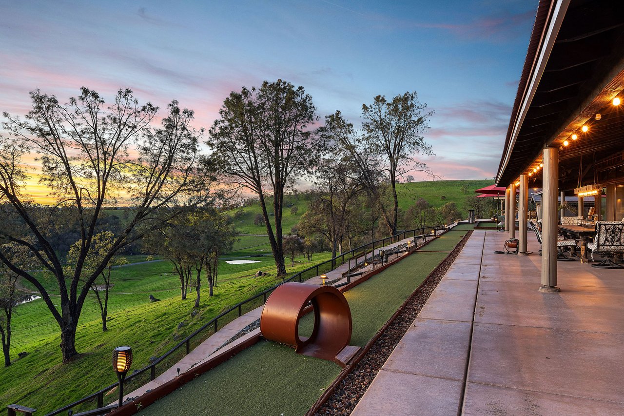 7270 Sutter Ione Road presents a rare 137-acre gated preserve designed for luxury living, recreation, and privacy. Rolling hills dotted with more than 1,000 oak trees are accessed by half a mile of paved roads and three miles of drivable trails. Five ponds, a spring-fed waterfall along Sutter Creek, and seasonal Jackass Creek with a creekside village and cold-water jacuzzi create a striking natural setting. A hilltop overlook captures 180° valley views, with the Antioch Bridge lights and Downtown Sacramento skyline visible at night and Mount Diablo on clear days.