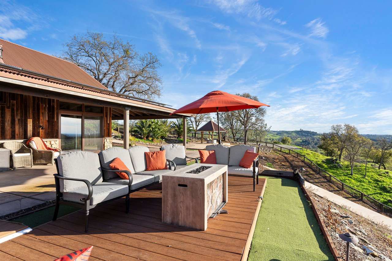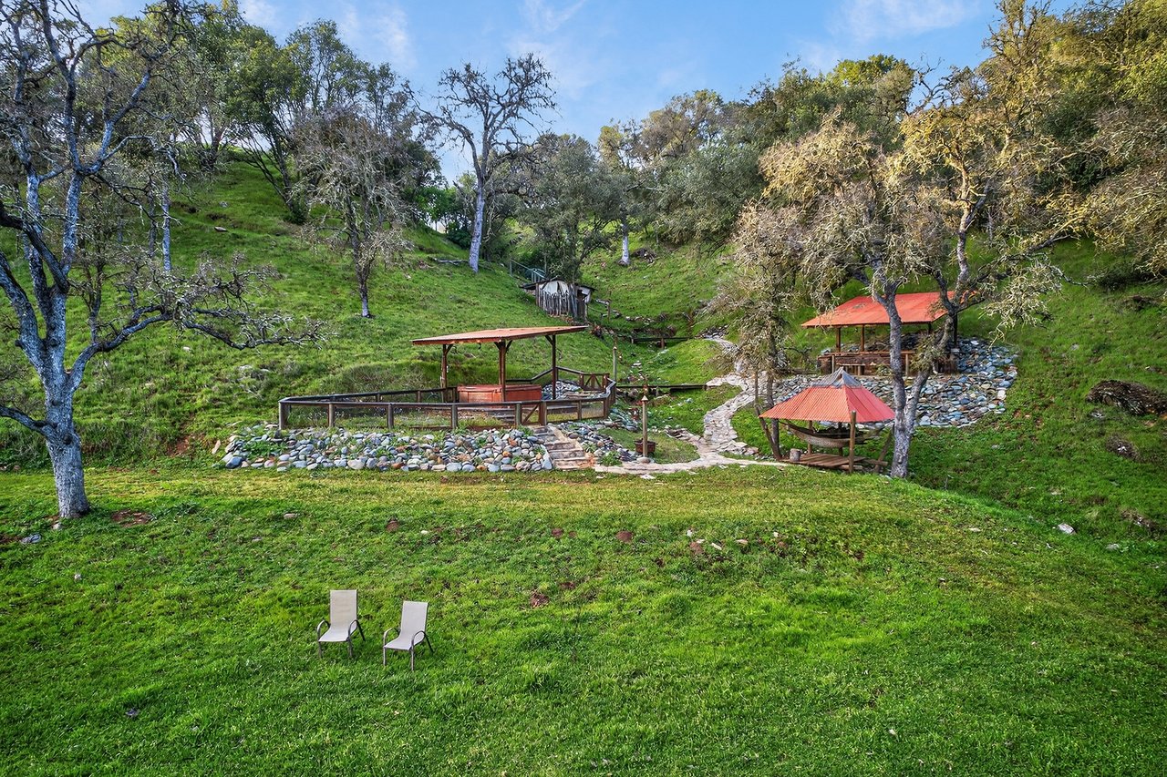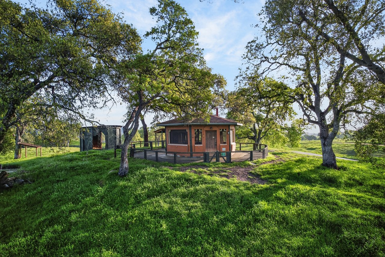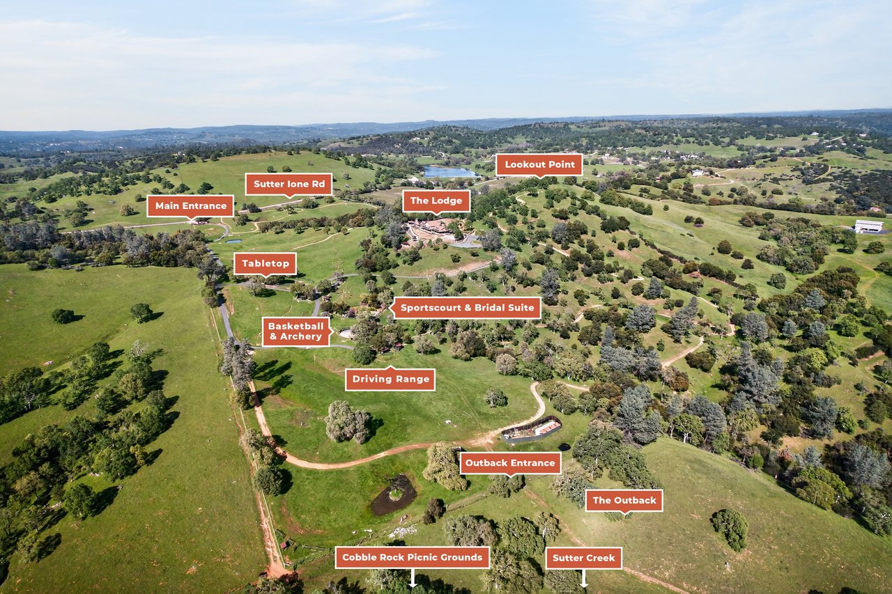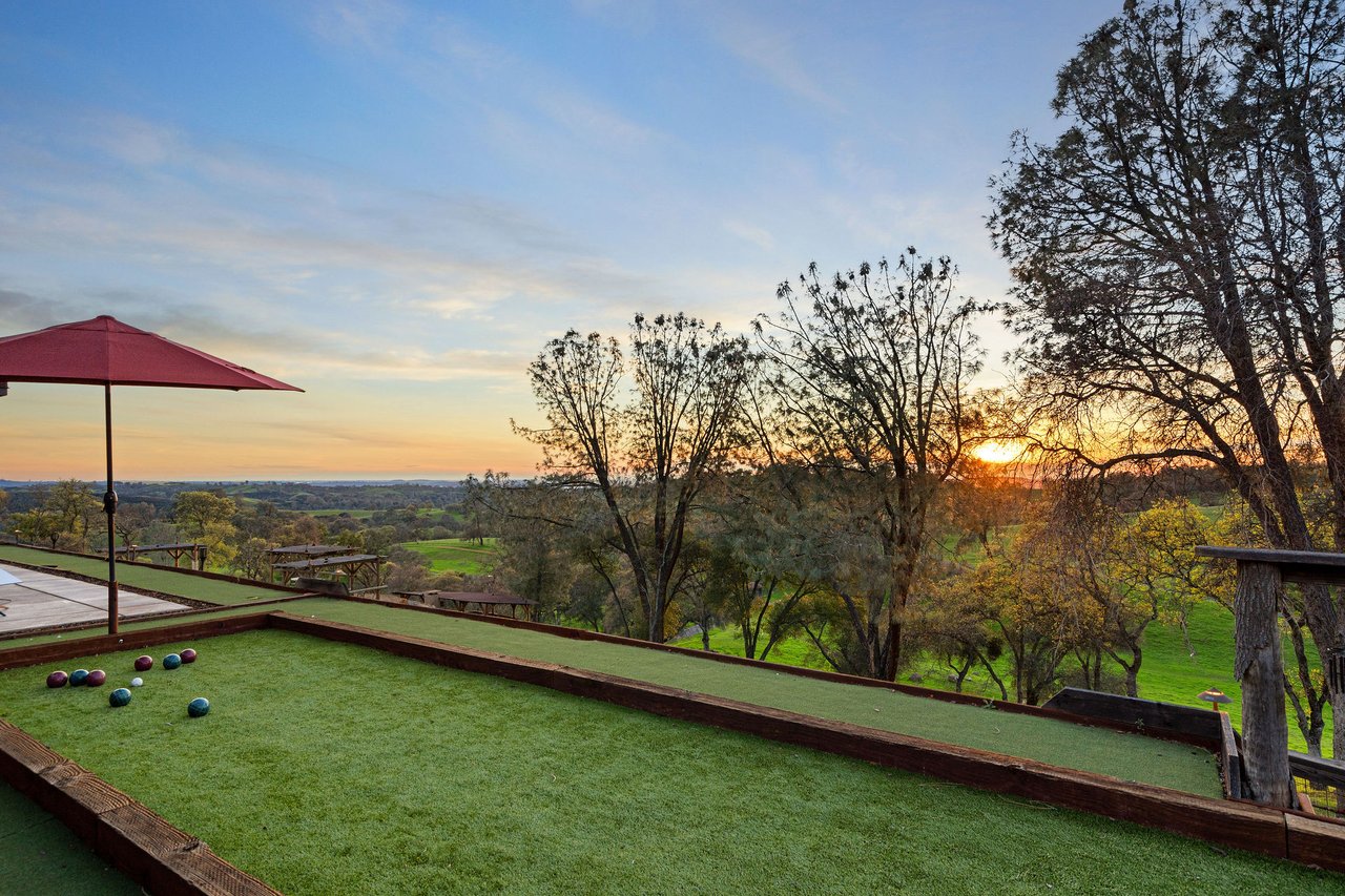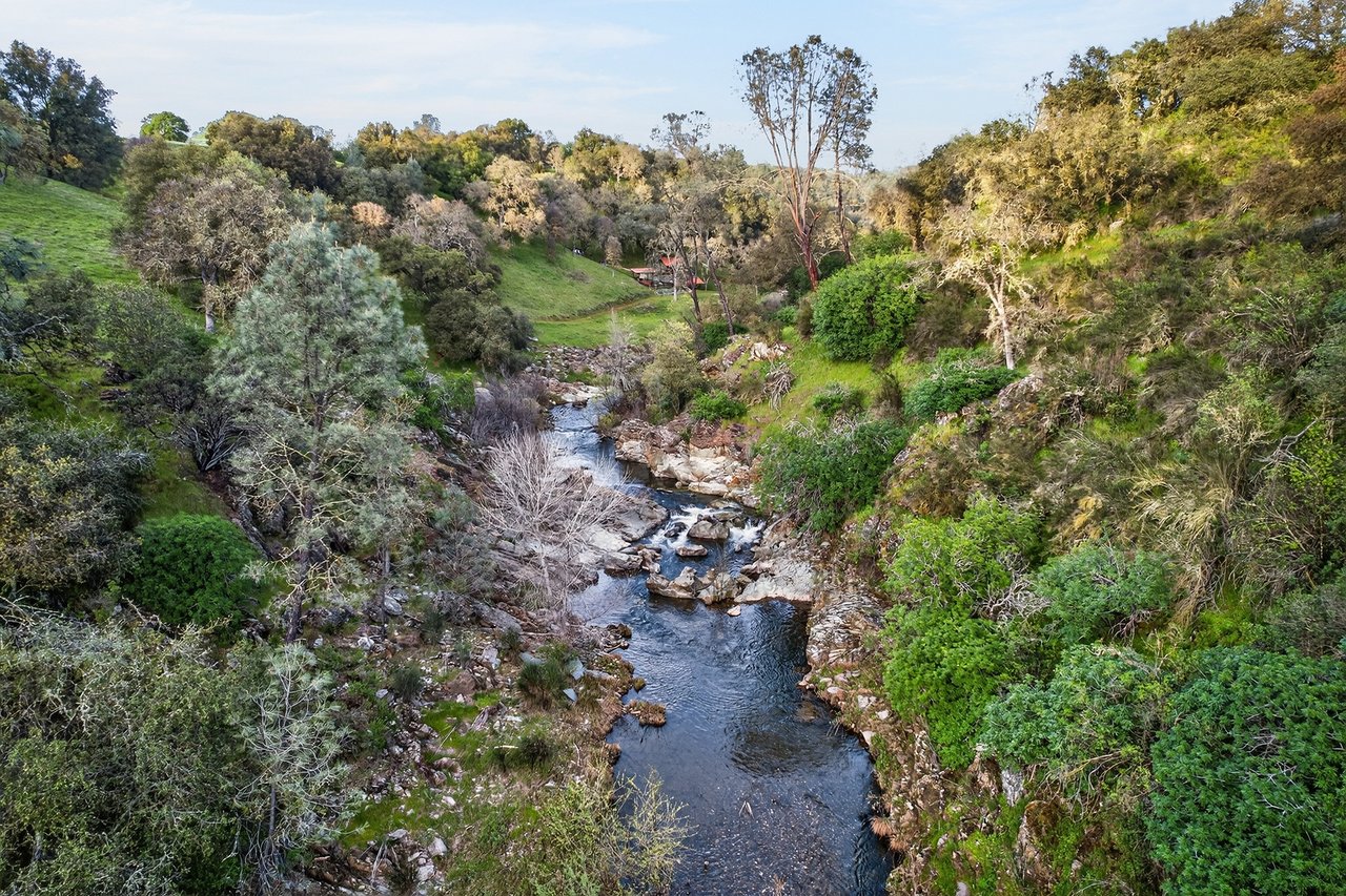 7270 Sutter Ione Road presents a rare 137-acre gated preserve designed for luxury living, recreation, and privacy. Rolling hills dotted with more than 1,000 oak trees are accessed by half a mile of paved roads and three miles of drivable trails. Five ponds, a spring-fed waterfall along Sutter Creek, and seasonal Jackass Creek with a creekside village and cold-water jacuzzi create a striking natural setting. A hilltop overlook captures 180° valley views, with the Antioch Bridge lights and Downtown Sacramento skyline visible at night and Mount Diablo on clear days.