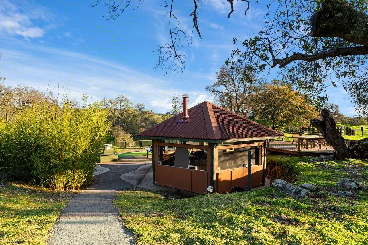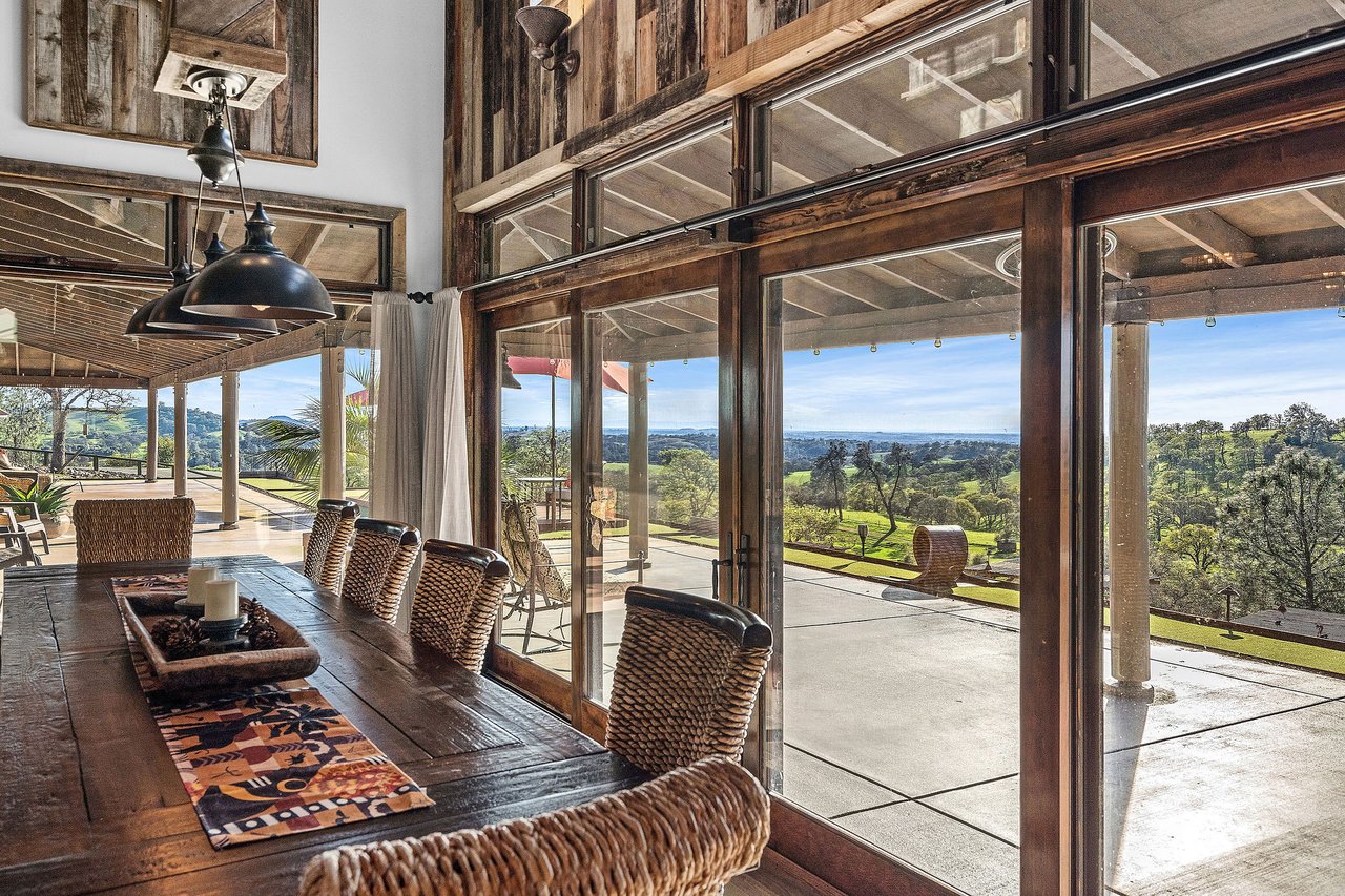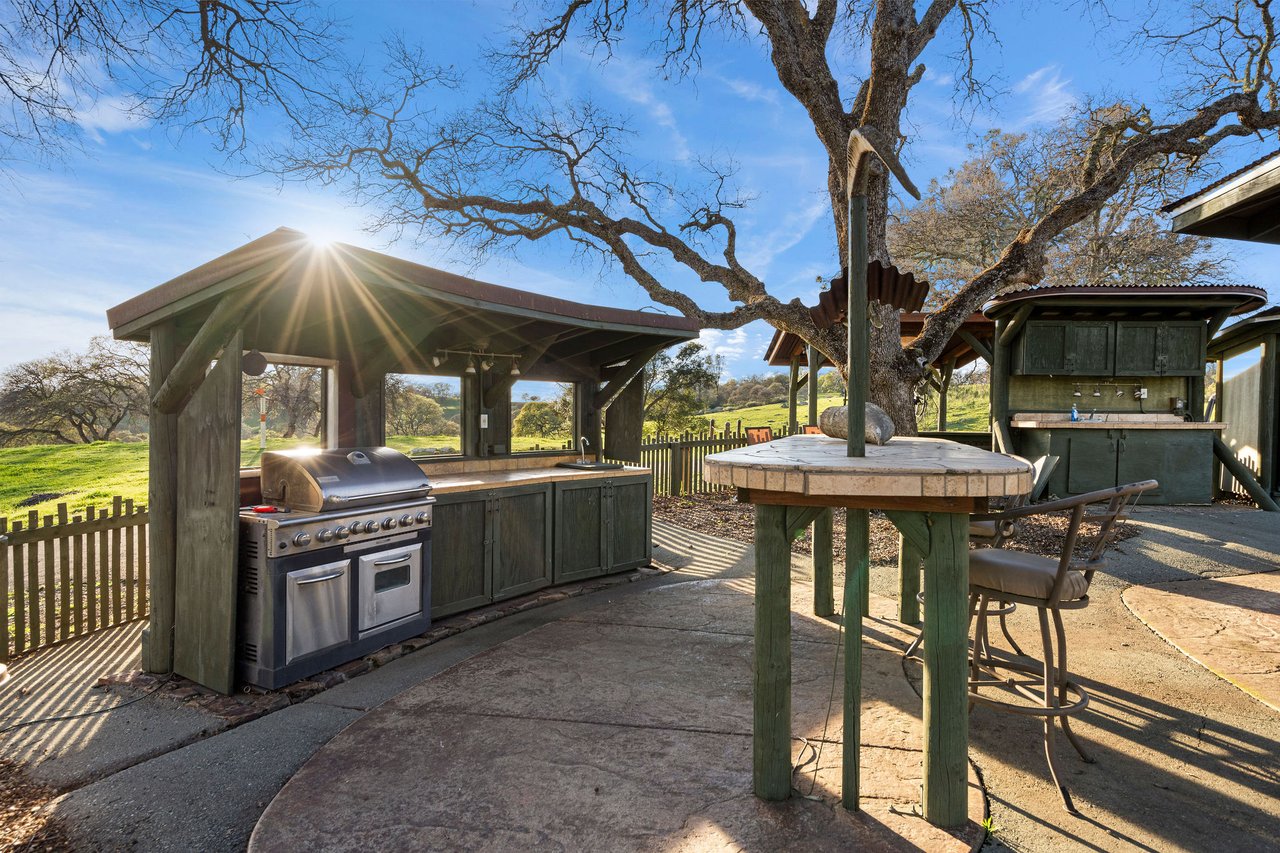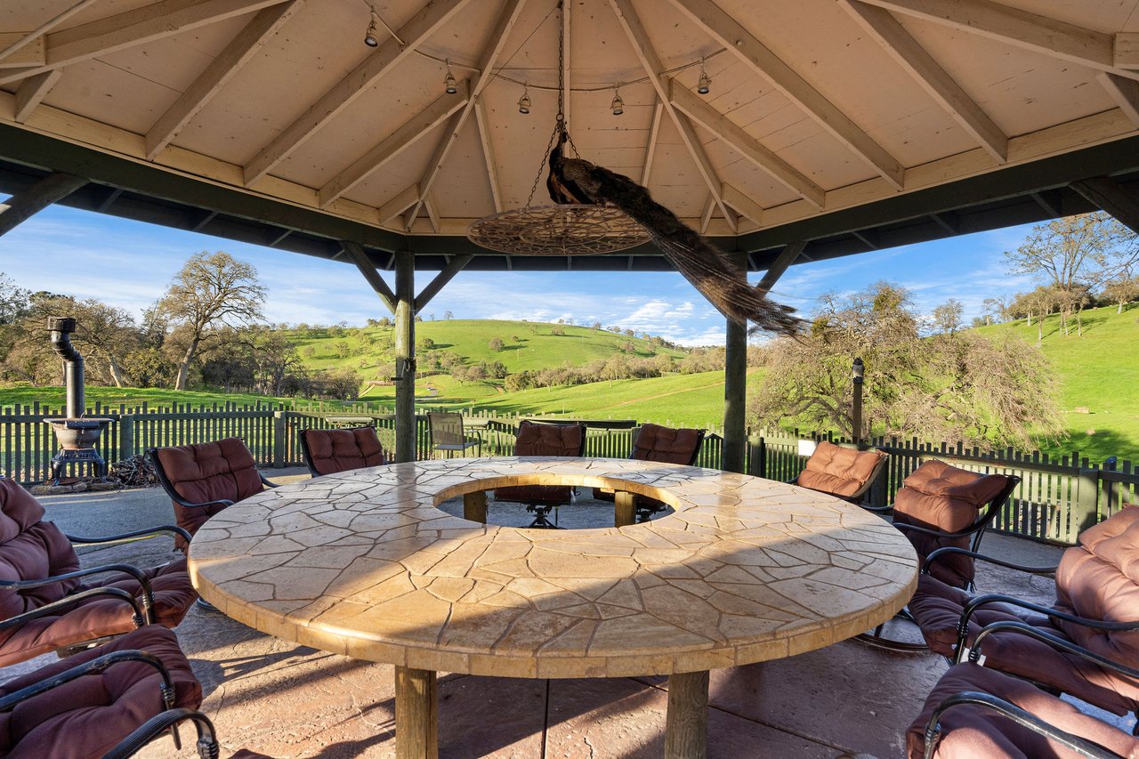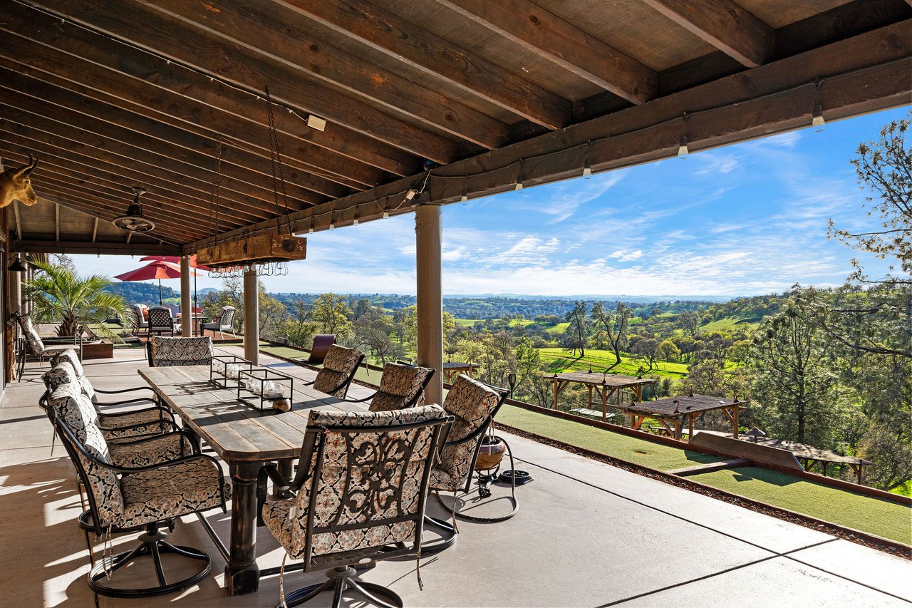 7270 Sutter Ione Road presents a rare 137-acre gated preserve designed for luxury living, recreation, and privacy. Rolling hills dotted with more than 1,000 oak trees are accessed by half a mile of paved roads and three miles of drivable trails. Five ponds, a spring-fed waterfall along Sutter Creek, and seasonal Jackass Creek with a creekside village and cold-water jacuzzi create a striking natural setting. A hilltop overlook captures 180° valley views, with the Antioch Bridge lights and Downtown Sacramento skyline visible at night and Mount Diablo on clear days.