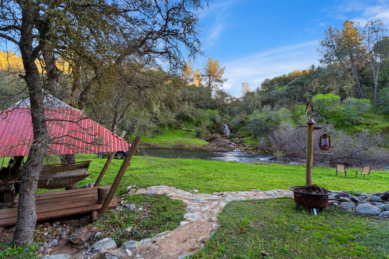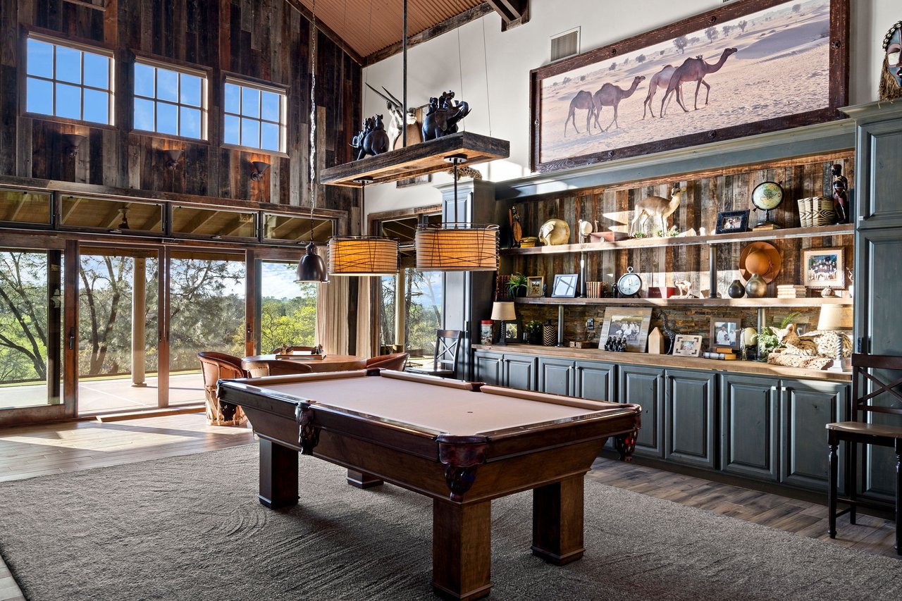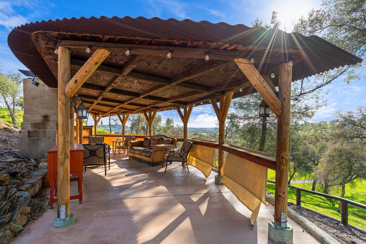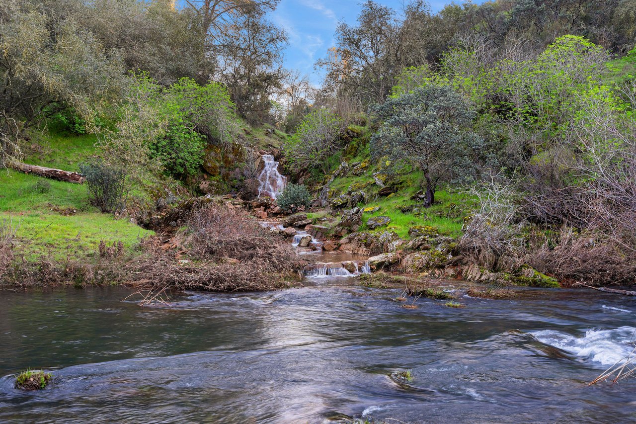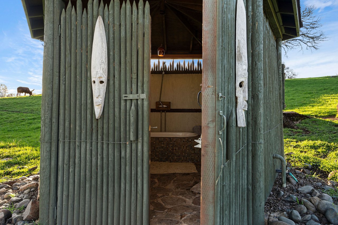 7270 Sutter Ione Road presents a rare 137-acre gated preserve designed for luxury living, recreation, and privacy. Rolling hills dotted with more than 1,000 oak trees are accessed by half a mile of paved roads and three miles of drivable trails. Five ponds, a spring-fed waterfall along Sutter Creek, and seasonal Jackass Creek with a creekside village and cold-water jacuzzi create a striking natural setting. A hilltop overlook captures 180° valley views, with the Antioch Bridge lights and Downtown Sacramento skyline visible at night and Mount Diablo on clear days.