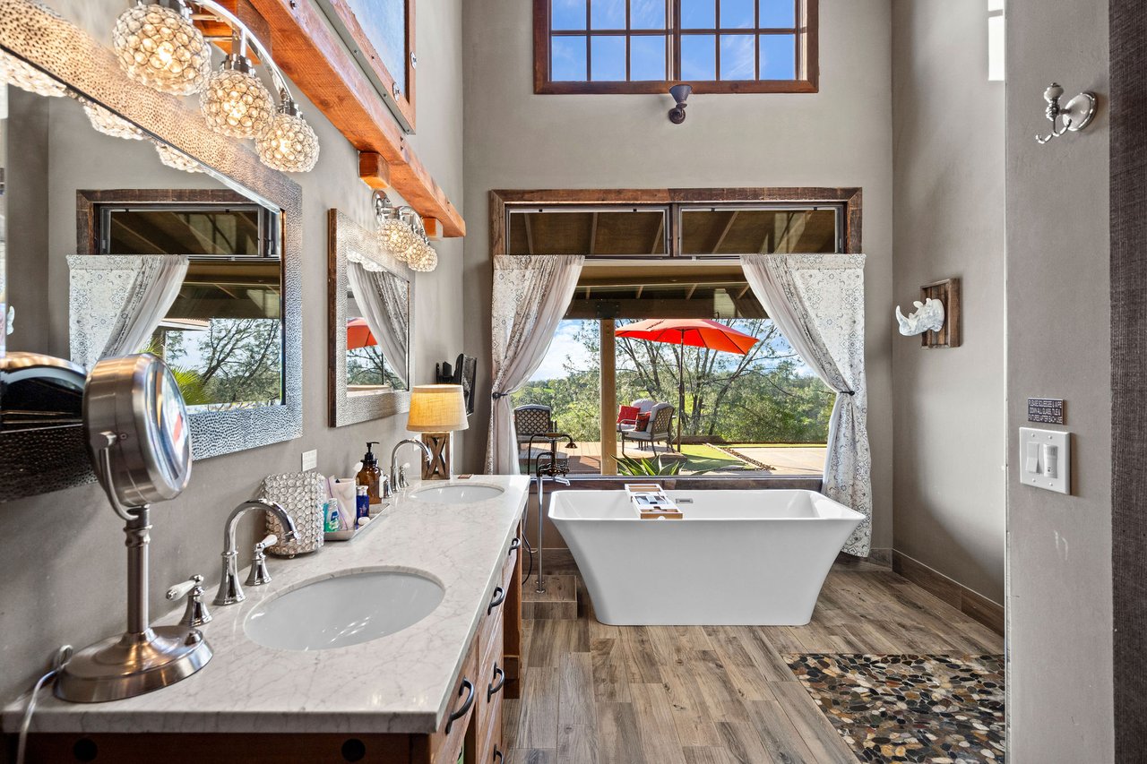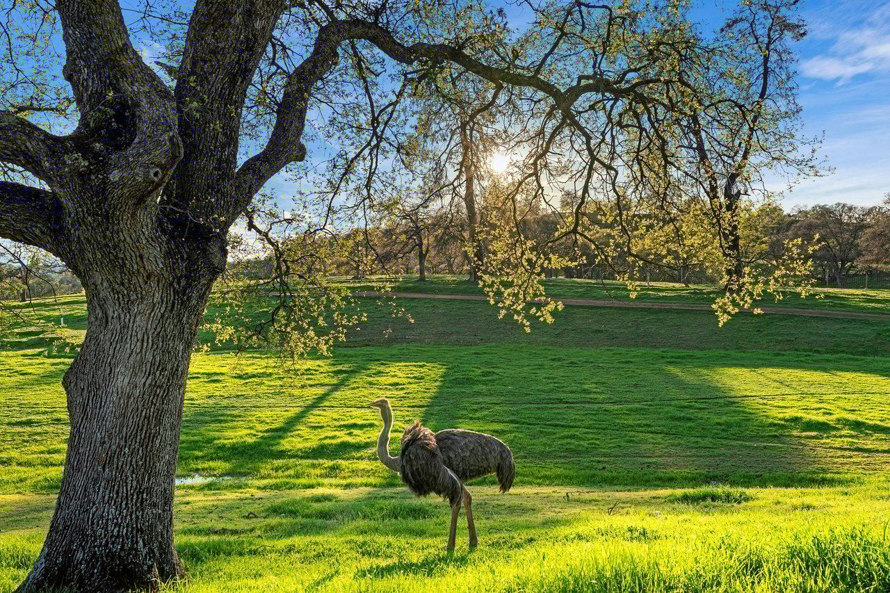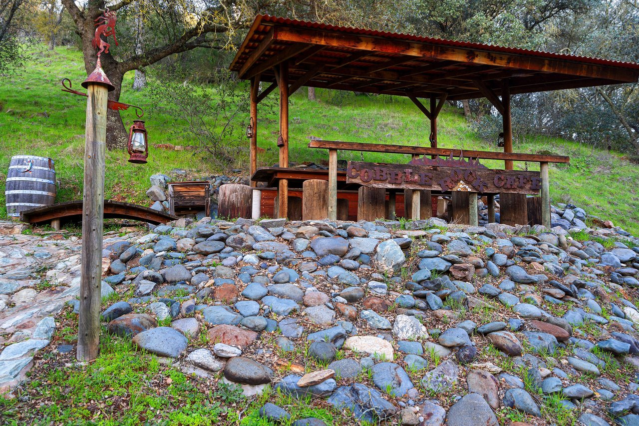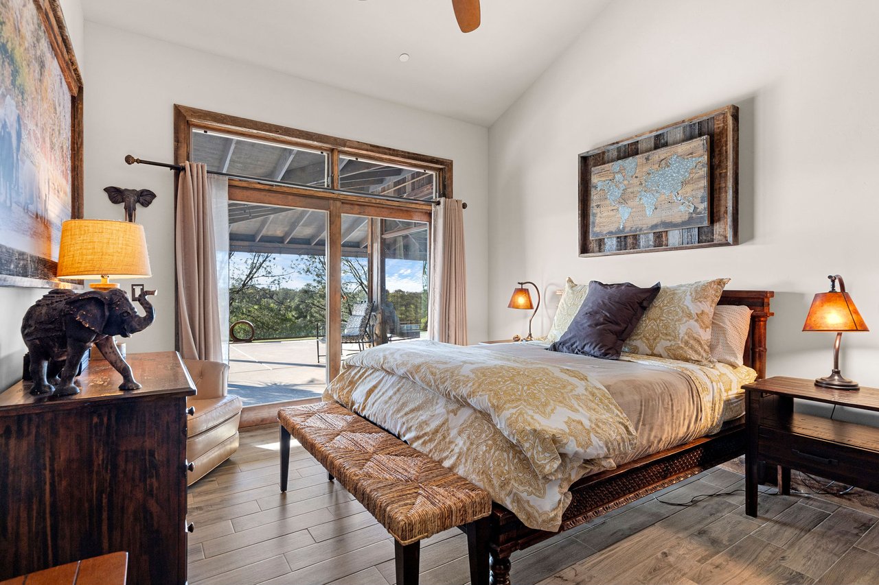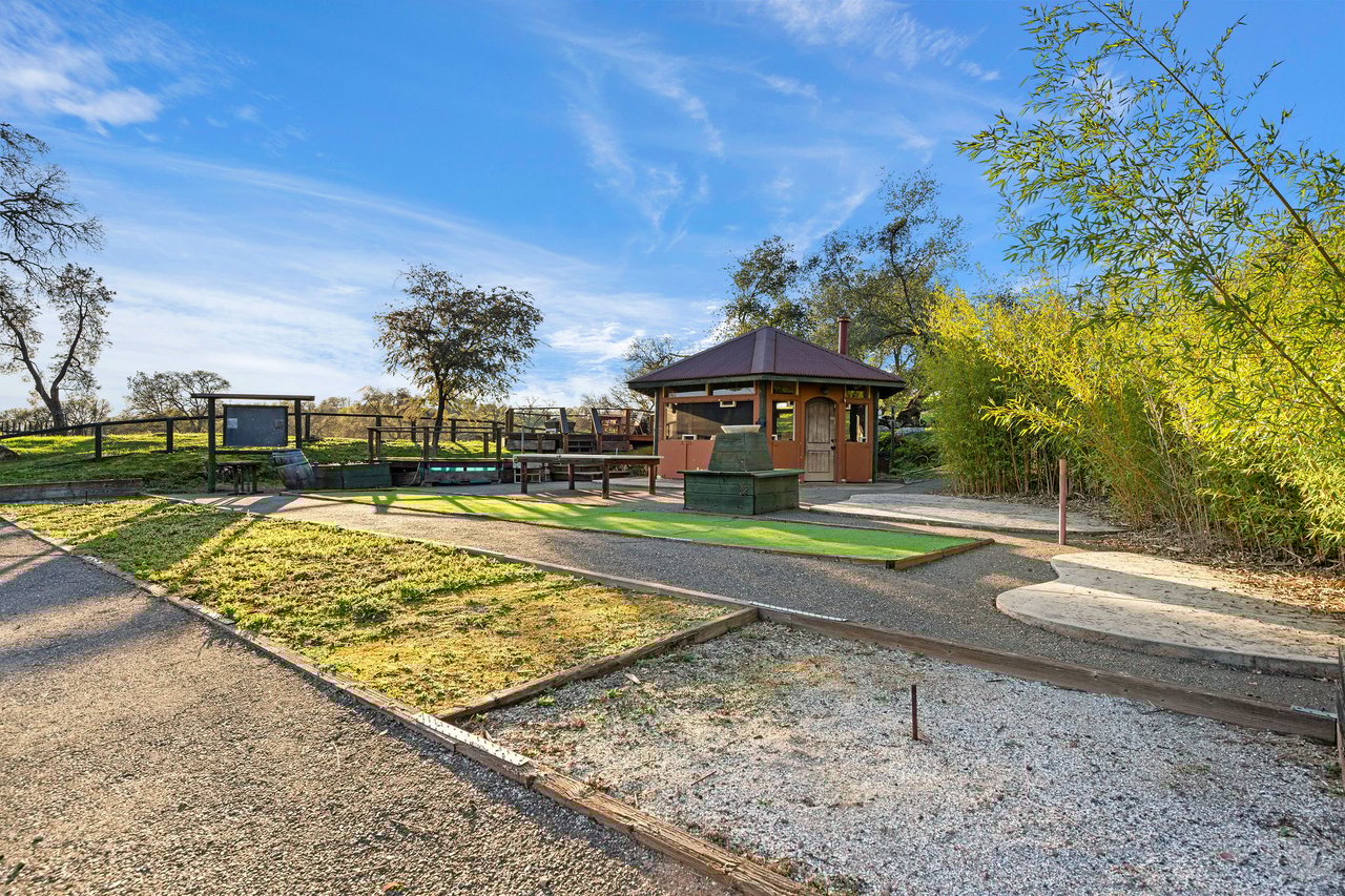 7270 Sutter Ione Road presents a rare 137-acre gated preserve designed for luxury living, recreation, and privacy. Rolling hills dotted with more than 1,000 oak trees are accessed by half a mile of paved roads and three miles of drivable trails. Five ponds, a spring-fed waterfall along Sutter Creek, and seasonal Jackass Creek with a creekside village and cold-water jacuzzi create a striking natural setting. A hilltop overlook captures 180° valley views, with the Antioch Bridge lights and Downtown Sacramento skyline visible at night and Mount Diablo on clear days.